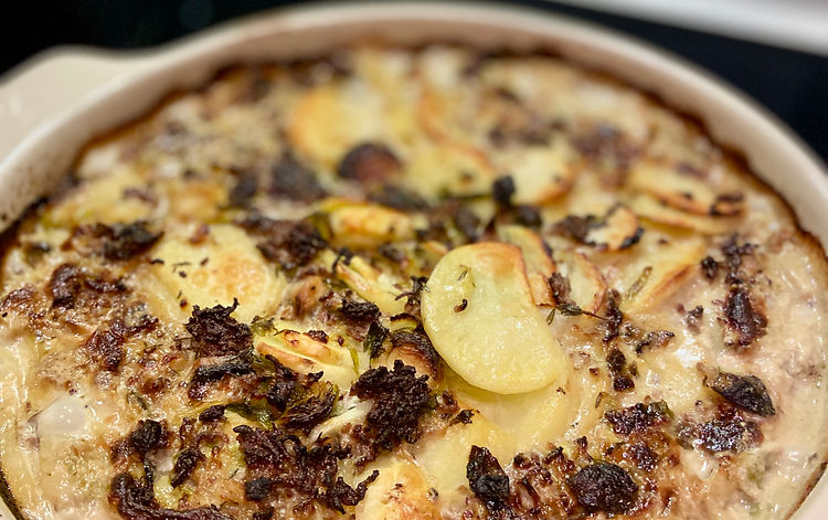 Gratinera i ugn i 30 min eller tills potatisen är mjuk.